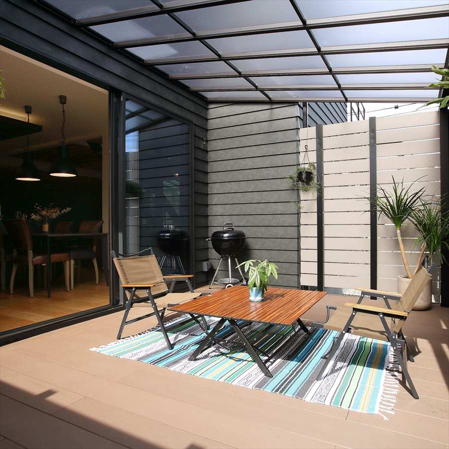 ■ダイニングキッチンから繋がるのは約9畳のプライベートテラス。周囲の目を気にせずBBQやベランピングが楽しめます