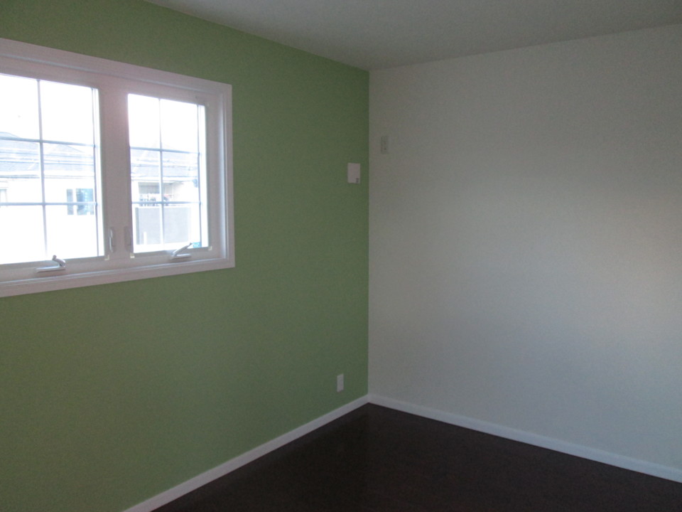 木工事が終わるとクロスを貼る作業に移ります。天井・壁にM様がお選びになられましたクロスが貼られ、部屋の雰囲気が明るくなりました。白色のクロスをベースに、部屋の個性を演出してくれるアクセントクロスも貼られています。