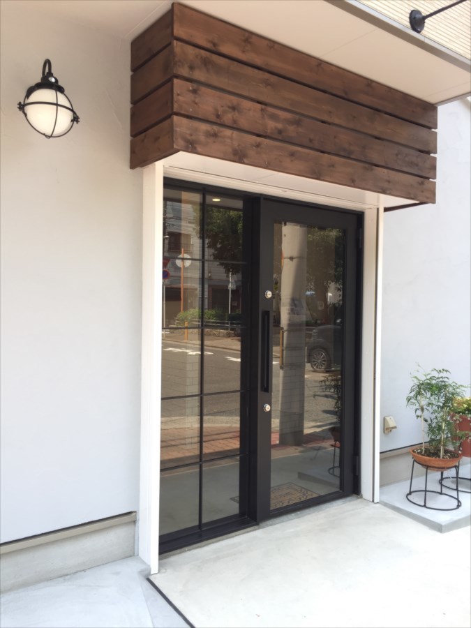 新しくした設備・建材:外壁塗り壁工事、アイアン製店舗ドア、格子窓、ミニキッチン、洗髪台造作収納、モルタル床エイジング塗装、壁クロス&タイル仕上げ